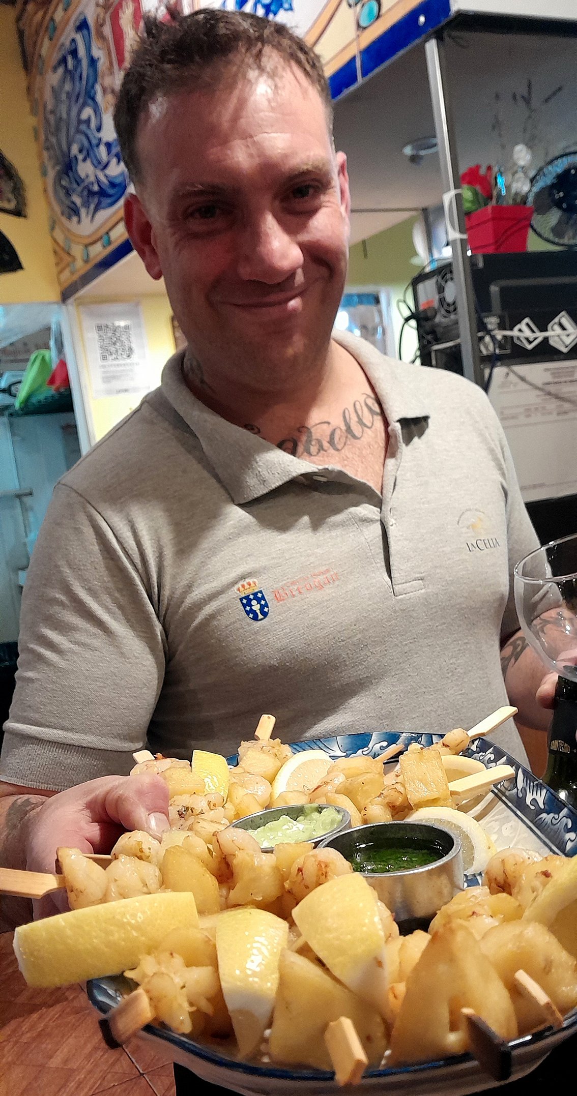 “De la cocina familiar copiamos la paella, los callos, la tortilla, la empanada gallega, lo que cocinaba mi vieja. El pulpo lo tuve que aprender un poquito porque es bastante difícil de cocinar y hay que traer pulpo de Galicia, no hay más remedio. Pese a que no se vende mucho nosotros siempre tenemos pulpo gallego, bacalao noruego y merluza negra”, señaló.