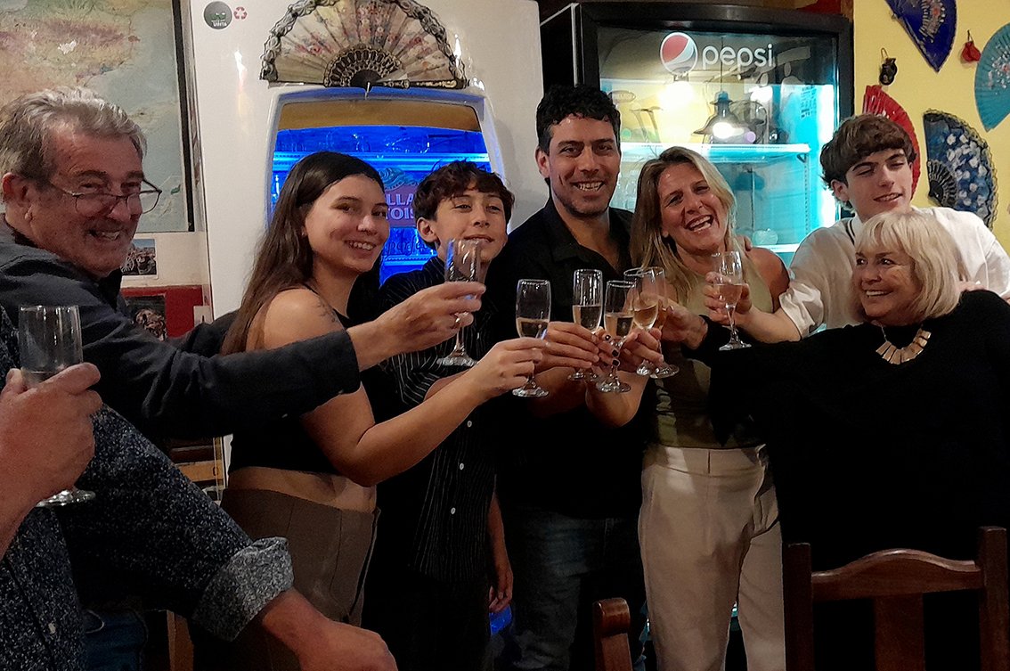 No faltaron los brindis con amigos, la tradicional queimada, y los festejos por el 20 aniversario de casados de Santiago y Gimena, junto a sus tres hijos.